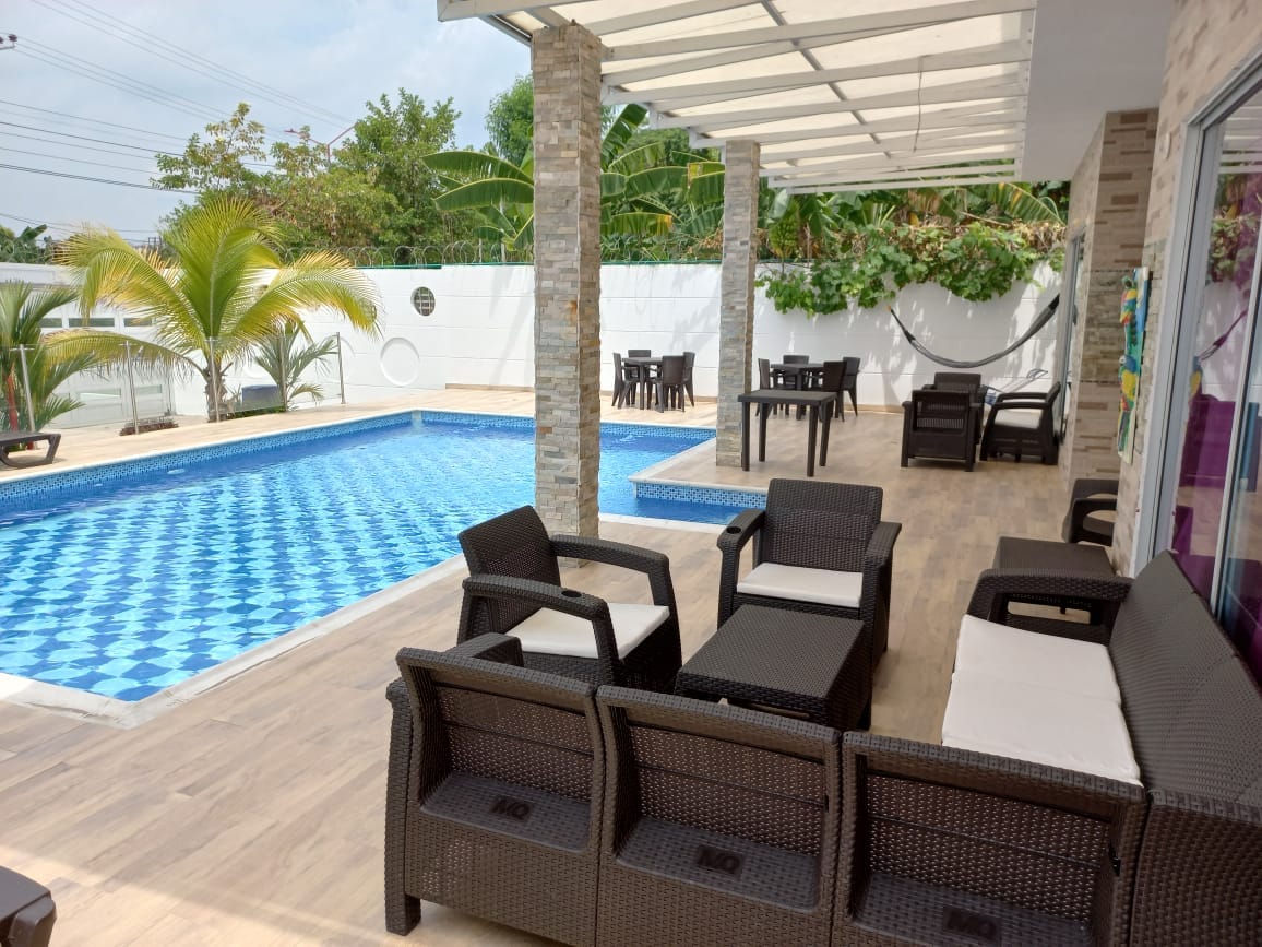 Hermosa casa moderna y en perfecto estado de 5 habitaciones con gran piscina, jacuzzi con chorros y burbujas, zona de bronceo, kiosko social, parrila BBQ, teppanyaki, zona verde de juego, comedor y sala exterior, cocina full equipada, comedor y sala interior, mesa de billar y parqueadero. Ideal para vacaciones en familia. La sede social cuenta con campo de golf, canchas de tenis, lago para deportes náuticos, parque para niños, cancha de fútbol, iglesia, restaurante, zona de comidas, seguidad 24H