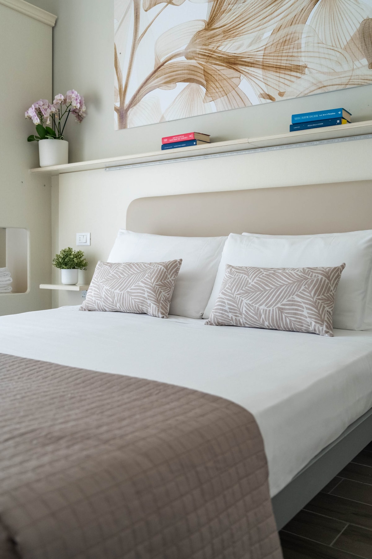 Camera rinnovata in Boutique Hotel - Riccione Beach Hotel - Vero' per chi desidera un ambiente raffinato e confortevole. Hanno un arredamento moderno e contemporaneo. Servizi è dotazioni ( La pulizia della camera è’ giornaliera a cura del nostro staff ) Terrazza Connessione Wi-Fi veloce Frigobar a richiesta Cassaforte Condizionatore / Riscaldamento Autonomo TV LCD con schermo piatto Bagno con box doccia e asciugacapelli Kit asciugamani Prodotti doccia Doppio cuscino Materassi ignifughi