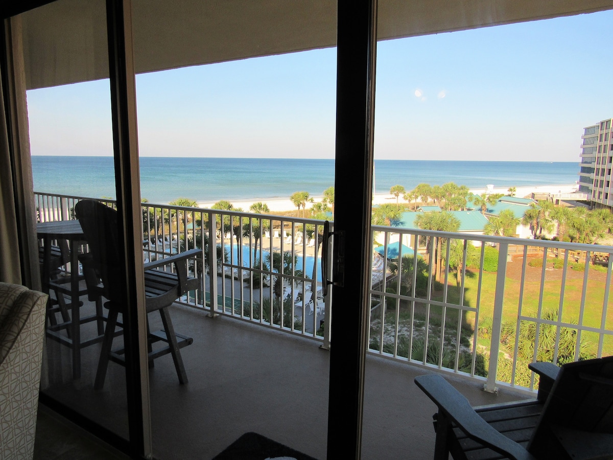 NEW FLOORS! NEW PAINT! NEW LOOK! Beachfront, Pool front, Huge balcony, King in master on Gulf of Mexico, Two queen beds in second bedroom. Sofa Sleeper in living room. Condo sleeps 8. The balcony has entry from both the living room and master bedroom. Over 1200 square feet and outrageous views from this 4th-floor unit that faces westward and has breathtaking sunsets. The large peaceful balcony is difficult to leave with the amazing views of the Gulf of Mexico overlooking the pools!