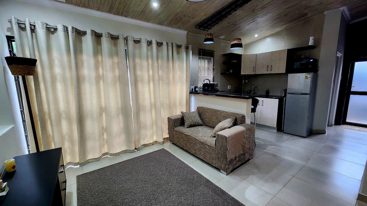 BHome 2 offers a comfortable apartment with 1 bedroom with a queen size bed, en-suite bathroom, open-plan kitchen and living room and a patio with a small garden. Security: undercover parking for one vehicle, alarm system, electric fence, street patrol and CCTV monitoring. Owner stays on premises. Laundry can be arranged for long-term guests.
