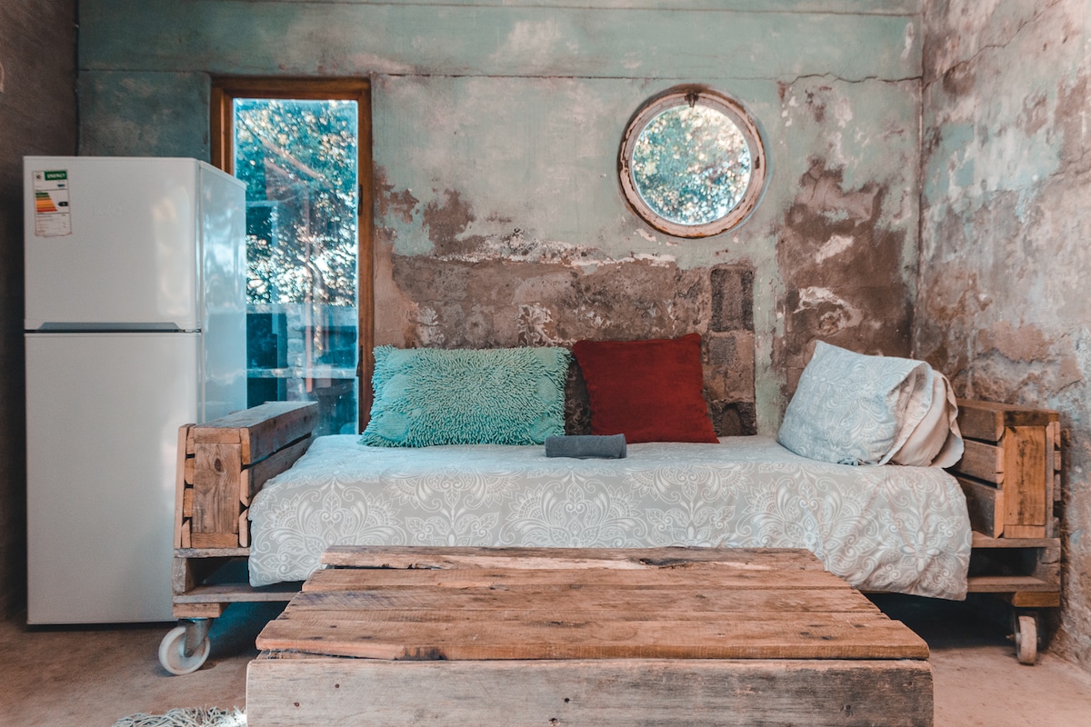 Double bedroom with a queen bed and 2 day sleepers. Bigger that Flying Prawn and Red Herring. This unit is on the front line of the Hatchery. The bathroom is located in the main bedroom and the 2 bedrooms are divided with glass doors and curtains