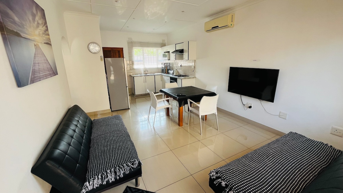 Escape the busyness in this calm, stylish and friendly space. Located in a quiet neighbourhood five minutes from the airport and nearby amenities, whether you're traveling for work or leisure, Clifton Home is the place for you. We offer your own private entrance, secure parking under a carport, wifi, TV with Netflix and Amazon Prime, a gas geyser and gas stove, quality bedding, air conditioners, and your own private garden with a braai.