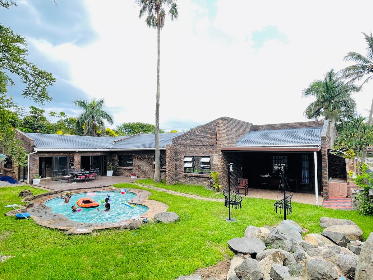 🌿Family friendly self catering house 🌿Stunning braai area overlooking a crystal clear swimming pool accompanied by a swing on the stoep. 🌿Junglegym for the kids. 🌿Vintage pool table, perfect for the weekend vibe or long work trips. 🌿Boat parking space available. 🌿High-speed WI-FI ideal for remote work 🌿 Smart TV with Netflix Your family will be close to everything when you stay at this centrally-located place. PnP less than 2kms away. 15 minute drive from Meerensee and the beach area.