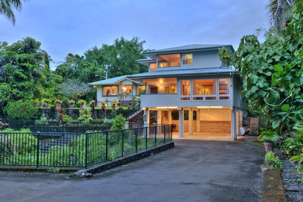 Location! This great new solar home is located just 2 miles north of downtown Hilo while sitting on quiet acreage in a gated community overlooking the Hilo Bay and Coconut Island, 5 miles to the airport. The perfect balance of being in the country and close to everything! Very close to black sand beaches, surf, botanical gardens and waterfalls! Hilo Farmer’s Market, and Volcano National Park. Relax in the hammock on the lanai with tropical breezes! Please note there are entry stairs.