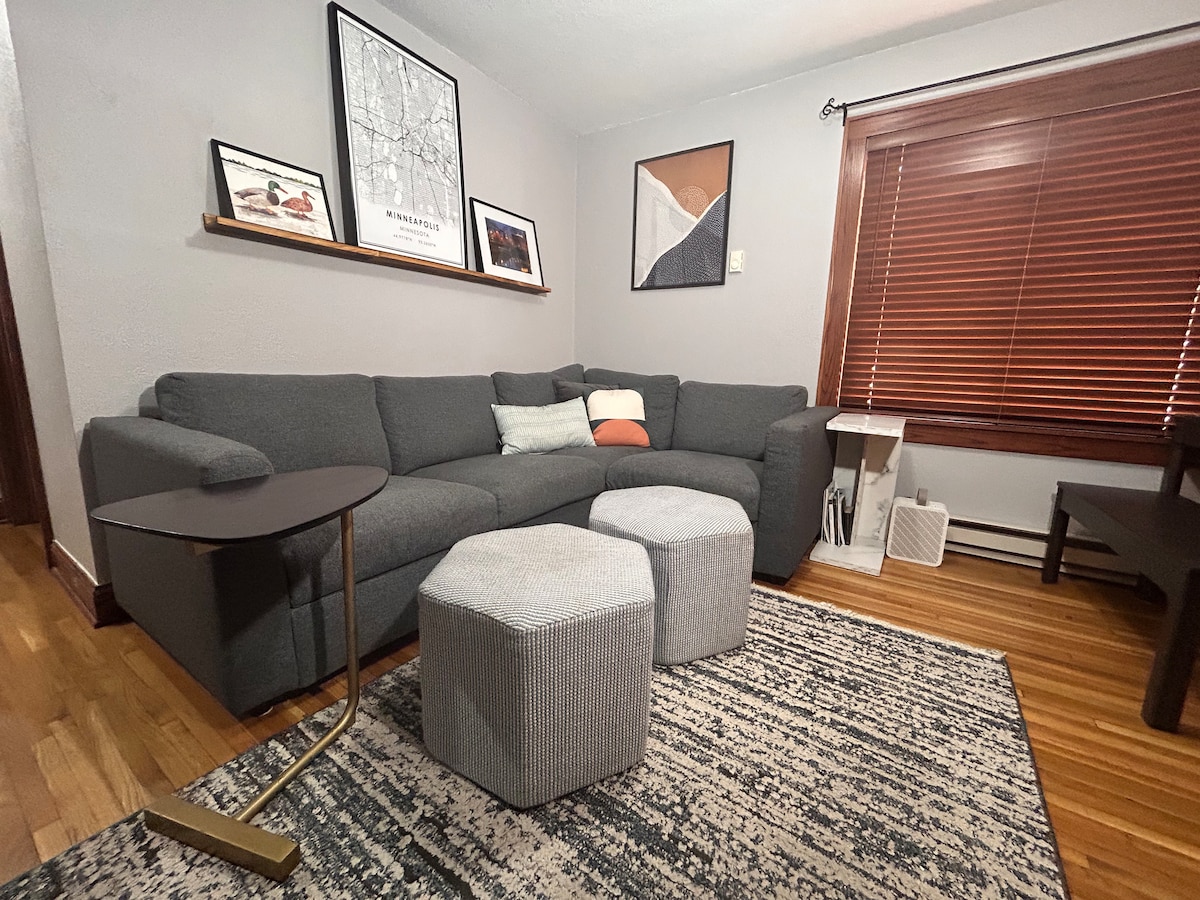 Sunny 1BR, 1-bath Minneapolis duplex apartment with private entrance, full kitchen, and fast Wi-Fi, perfect for couples, small families, and remote work. Quiet, immaculate upper-level space with hardwood floors, plants, and warm touches throughout. Family-friendly neighborhood with free street parking, 11 minutes to Downtown Minneapolis, 13 minutes to MSP Airport, and 15 minutes to Mall of America. 16 minute walk to light rail. Conveniently located w/ restaurants, cafés, parks, and lakes nearby!
