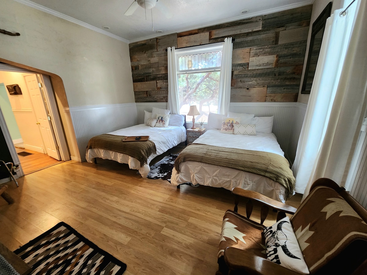 This is an 1800s original ranch house that has been modified to include modern amenities. It has two beds and one bath. The kitchen features apartment-sized appliances and is stocked with basic items. This unit includes a washer and dryer, mainly because we know people come to our area to explore and get dirty. The Cabin is centrally located to ATV and hiking trails, Monroe Paragliding, Hot Springs, Hunting, and fishing.