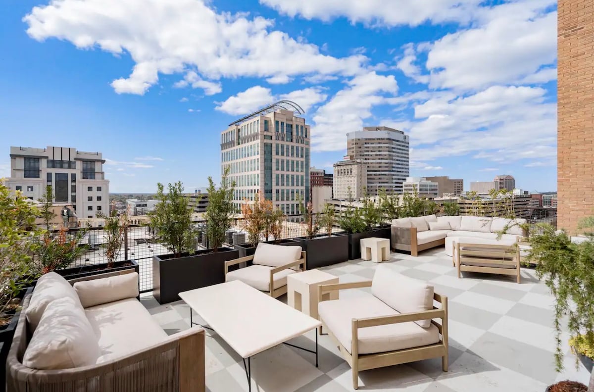 Kick back and relax in this calming space or walk/bike to everything in NoMa and the Main street district from this stylish, centrally located bungalow. When staying in, enjoy front porch sitting in t rocking chairs, or hang out in one of the two back yard spaces, a patio with gas fire pit & grill & covered couch area too Bedrooms with queen beds and comfy bedding in each room . Home comfortably sleeps 4. The kitchen is spacious and has all you need to cook if that's your ja