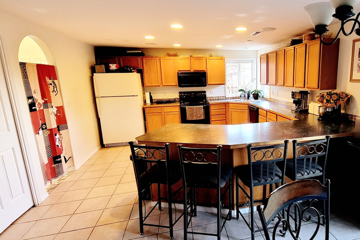 There's room for everyone in this well appointed home! Master has a king bed, guest room 1 has a bunk bed with a twin over full, guest room 2 has a full/queen, and the secluded family room has a full sized pull out sofa bed. There is a lovely patio with a nice view of Candy Mountain. The kitchen and adjoining BBQ patio are a convenient space to relax and prepare a nice meal.