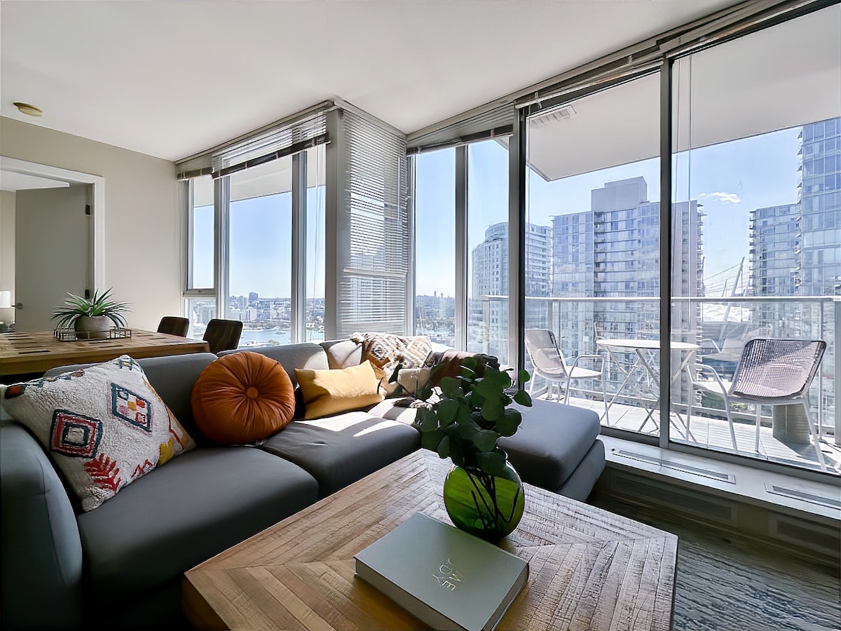 Stay in a bohemian style apartment that's incredibly close to Downtown Vancouver. This stunning 1-bedroom apartment is the perfect base for exploring the city's rich history and cultural landmarks. The apartment features a bright Queen-sized bedroom, a fully equipped modern kitchen, and a cozy living room with a large sofa bed for a restful sleep. Enjoy all the amenities you need for a comfortable stay in Vancouver!!
