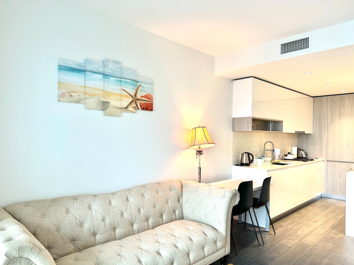 现代2卧室,靠近空铁,可欣赏美景/室内健身房