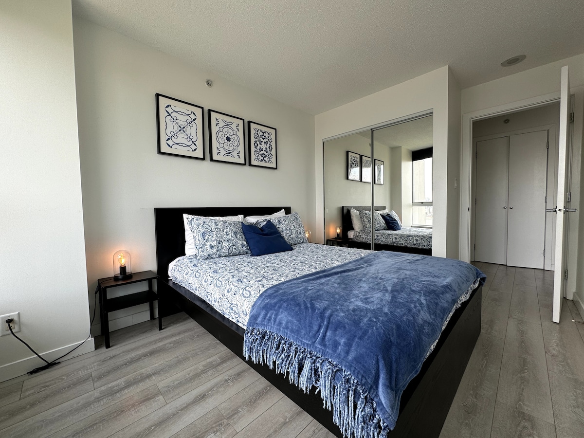 Enjoy a Vancouver experience at this centrally located place, steps away from Transit and within walking distance of BC Place and Rogers Arena! Fully furnished with a queen bed, sofa bed, a smart TV, dishwasher, washer & dryer, and a full kitchen with modern appliances. 1 free underground parking is provided. Building had a shared gym, indoor pool and sauna. Free of charge!