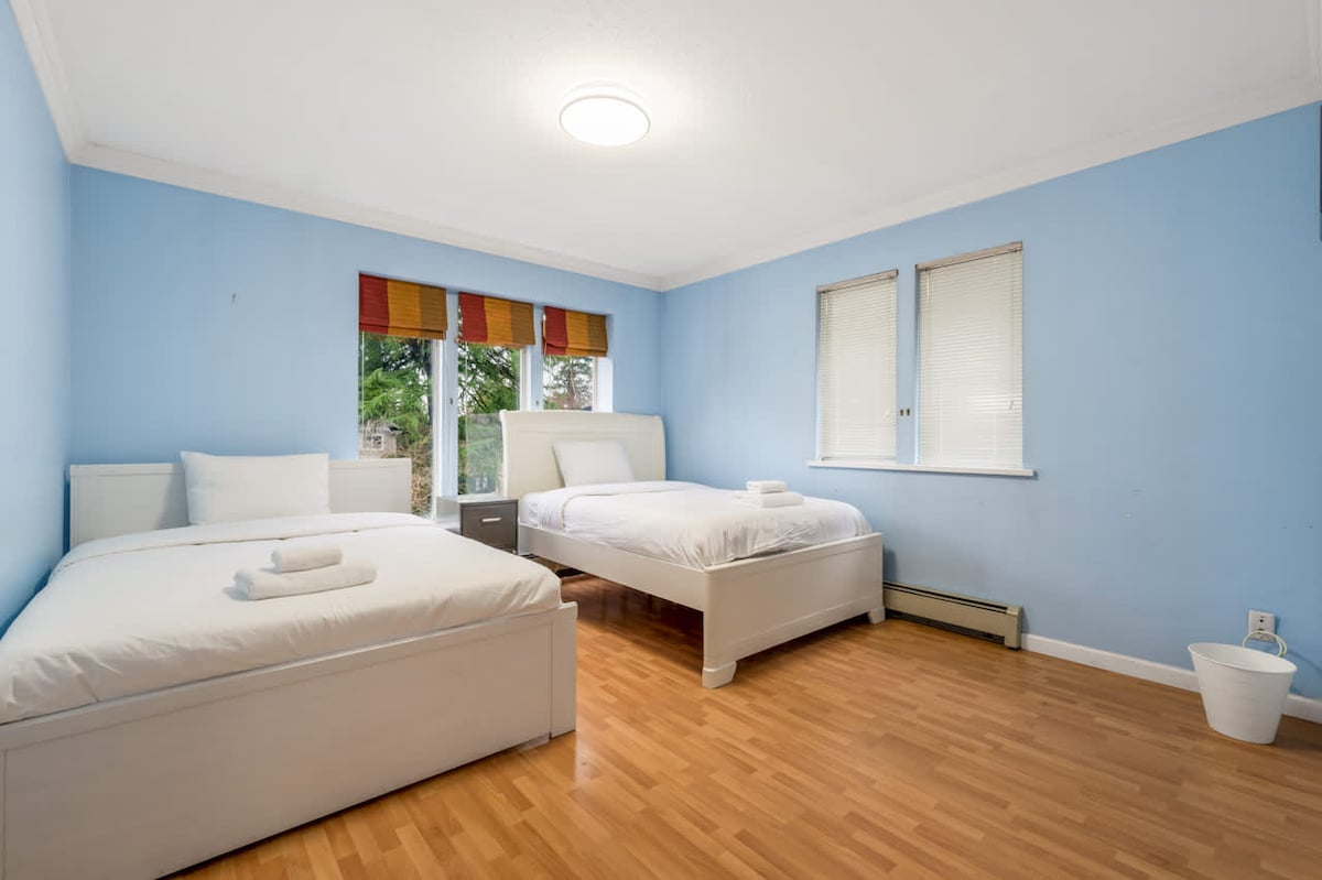 Newly furnished with modern minimalist feel. Located in a friendly neighborhood, this 1200sqft townhouse has 2 roof top patios, 3 bedrooms with queen size beds, 2 bathrooms and a fully equipped kitchen. If you are looking for a stay that is central to all locations (Burnaby, Downtown and Richmond)this is the place for you! Conveniently located close to restaurants, liquor store and grocery store. 2 min walk to the park, 10-15min walk to skytrain station and bus stop just a few steps away.