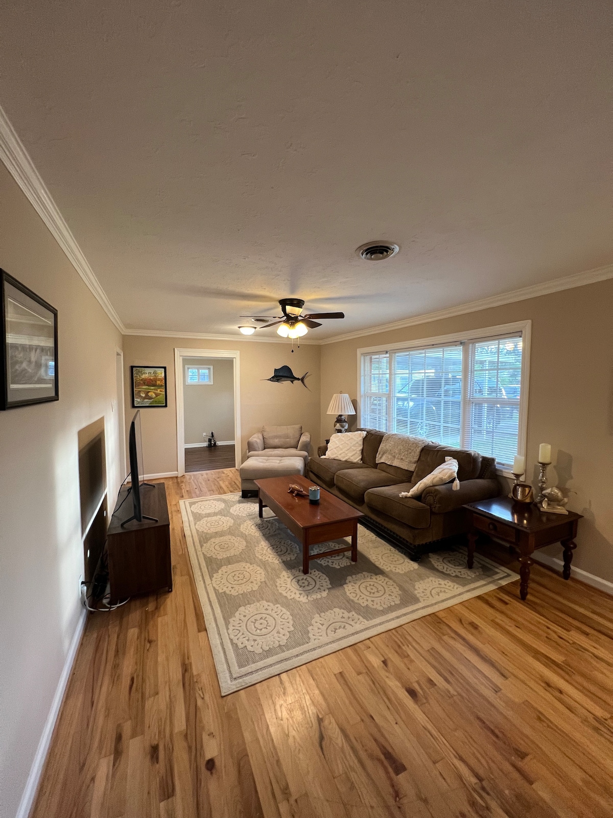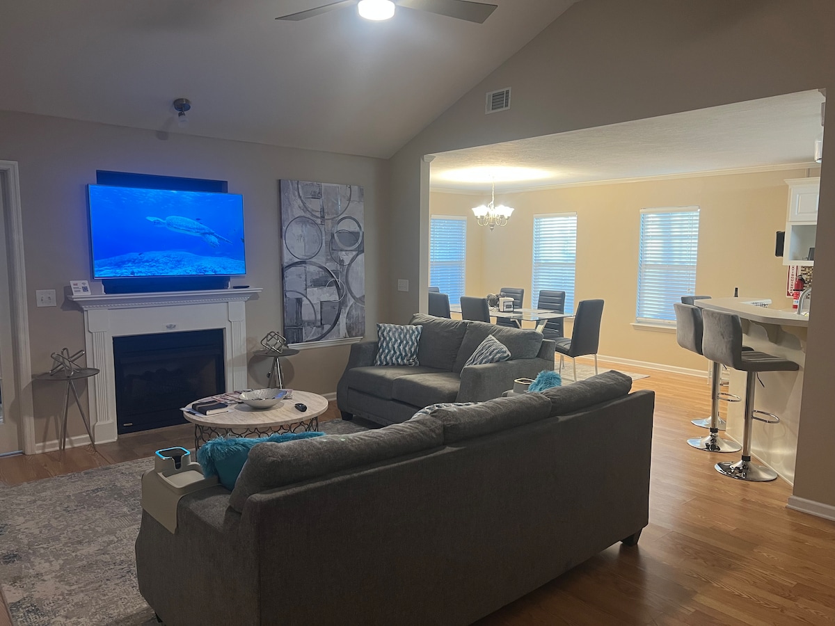 This stylish and charming home is the perfect retreat. 7 minutes away from the Augusta Mall and 12 from the Master’s. Several restaurants nearby, you’ll find plenty of dining options. Inside, you’ll find a beautifully decorated space with thoughtful amenities to make your stay comfortable. The fully loaded kitchen is perfect for preparing meals and includes a DIY waffle station and coffee bar—a delightful way to start your day. The stylish living areas offer a cozy, welcoming place to unwind.