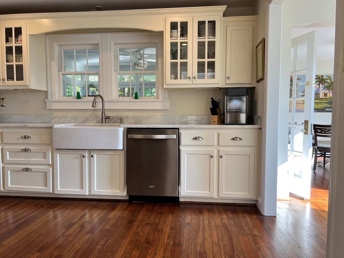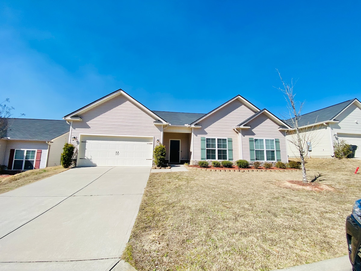 You will love our location! Our spacious brick ranch is on a beautiful street, 1.5 miles from the Masters, minutes from I-20, stores and the best collection of restaurants. Easy ride to Fort Gordon, Plant Vogtle, Augusta University and north Augusta. Our house is clean, quiet, private and cozy. It has 3 bedrooms, 2.5 baths, a living rm, a dining rm, a kitchen and a laundry rm. There are 1 King & 2 queen beds & 1 55" smart TV. Come with big yards and porches, jetted tub, WiFi & Parking.