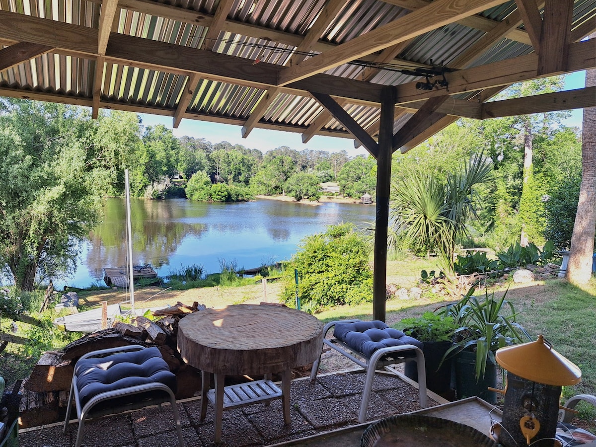 The Big Oak Retreat is a great little getaway close to town but feels so secluded and peaceful. The 2+ acre pond is stocked with bass, bream and catfish. Experience evenings by a fire making s'mores and enjoy your morning coffee on the enormous back patio overlooking the serene water. Inside the cabin, you will find a well equipped kitchen and a massive living area to host large family gatherings. Need more space? Inquire about "The Lively House" next door that offers 4bd/3ba.