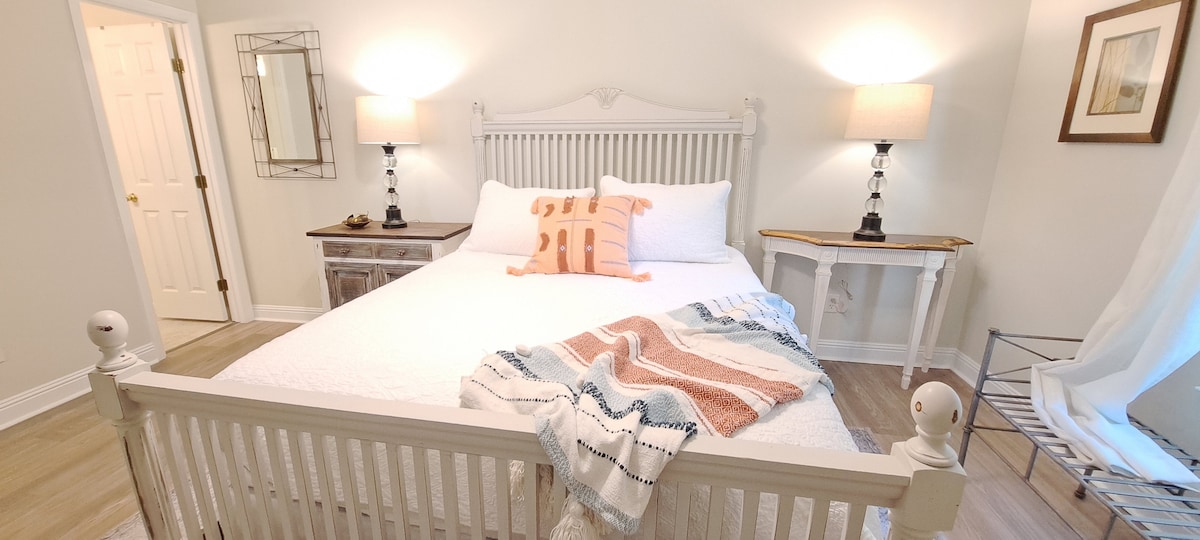 Golf fans will rejoice to stay within 1 block of the Masters but everyone will love this centrally located adorably comfortable two bedroom two bath townhouse. Each spacious bedroom is outfitted with queen size memory foam mattresses topped with Comphy Brand luxury sheets. Chefs will be right at home in this well appointed kitchen, or take advantage of the many nearby restaurants. Augusta's vibrant downtown is a few miles away, and there's nearly limitless outdoor activities for every level.