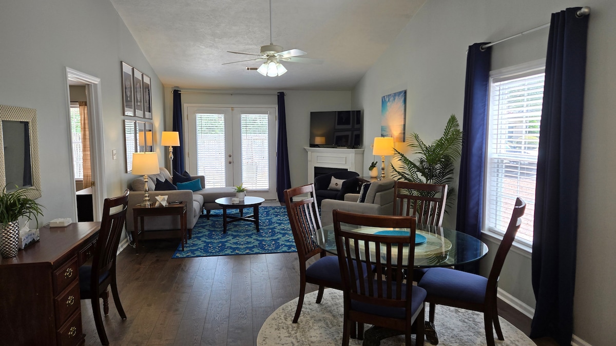 Amazing location close to everything: Dining, Shopping, Entertainment, and The Augusta National are just around the corner! Comfy king and queen memory foam beds, high-speed wi-fi, desk with charging station, coffee/tea area, 55" TV in living room and 40" and 32" in bedrooms. 1 mile to The Augusta National = 15 min walk or quick drive; 10-12 min drive to Downtown/Cyber Center, Medical District, MCG and Augusta University; 20 min drive to Fort Gordon and Augusta Regional Airport