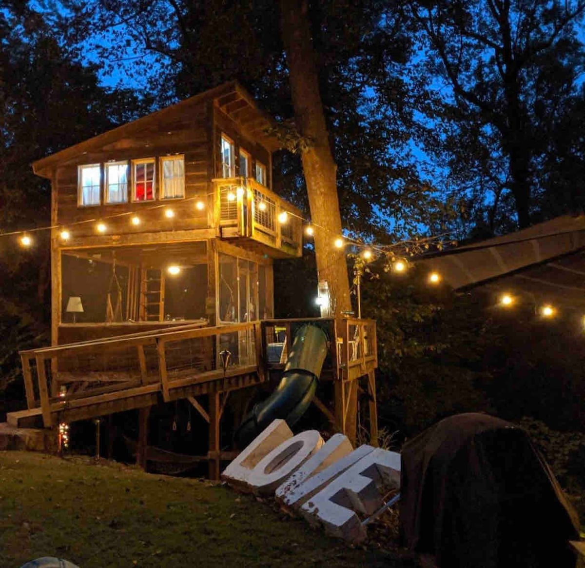 Fulfill your childhood dream of camping in a treehouse! From this central spot, easily explore the trails and river. Then, relax on the deck and enjoy the magic of the trees. •Airbnb “Top 20 Places to Stay in VA” •"Best of Richmond" by Style Magazine •Featured in Airbnb article on hospitality •One of "8 Great Airbnbs" in the U.S. by Inside Hook •Comes with bathroom, kitchenette & lounge apartment in host house •Dog-friendly Social media: @trailside_treehouse City permit #BLDR-107741-2022