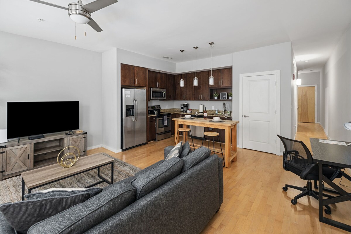 *Spacious bedroom *55" HDTV * Modern chic decor *Large bathroom *Cozy living room *Fully equipped kitchen *Washer & Dryer in unit *Gym *Elevator *Work desk in unit *Additional office /work space in the apartment *Yes!... One parking space is also included! ***DISCLAIMER: Decor and floor plan in the photos may differ from actual unit***