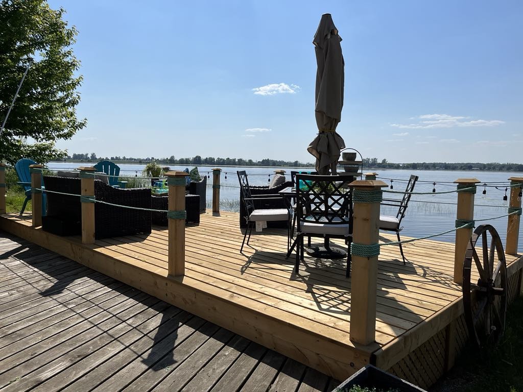This unique, tranquil and fully self-contained getaway waterfront property is ideally west-facing, right on Lower Rideau Lake that gives the best sunset views you'll ever see! YOU WILL HAVE THE ENTIRE GROUND FLOOR/WALK-OUT TO YOURSELF which has been thoughtfully designed for relaxation and recreation, access to 2 paddle boards, kayaks & amazing waterfront. Enjoy the Fully Screened in Porch, beautiful walk out with fire pit facing waterfront above and another one below in front of lake.