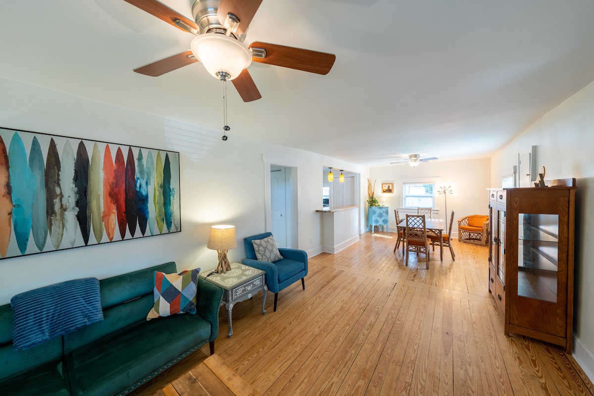 Find a refuge in the heart of NC at this cozy haven at the base of Rainbow Mountain. Nestled at the end of a gravel street right next to our residential home, our cottage offers a secluded space for rest and relaxation while remaining a mere stone's throw away from the attractions of Black Mountain. Snuggle up with some tea during brisk weather, or enjoy a morning coffee on the porch while the sun is shining. You can expect occasional visits from ducks, rabbits, deer, and bears. Come and rest.