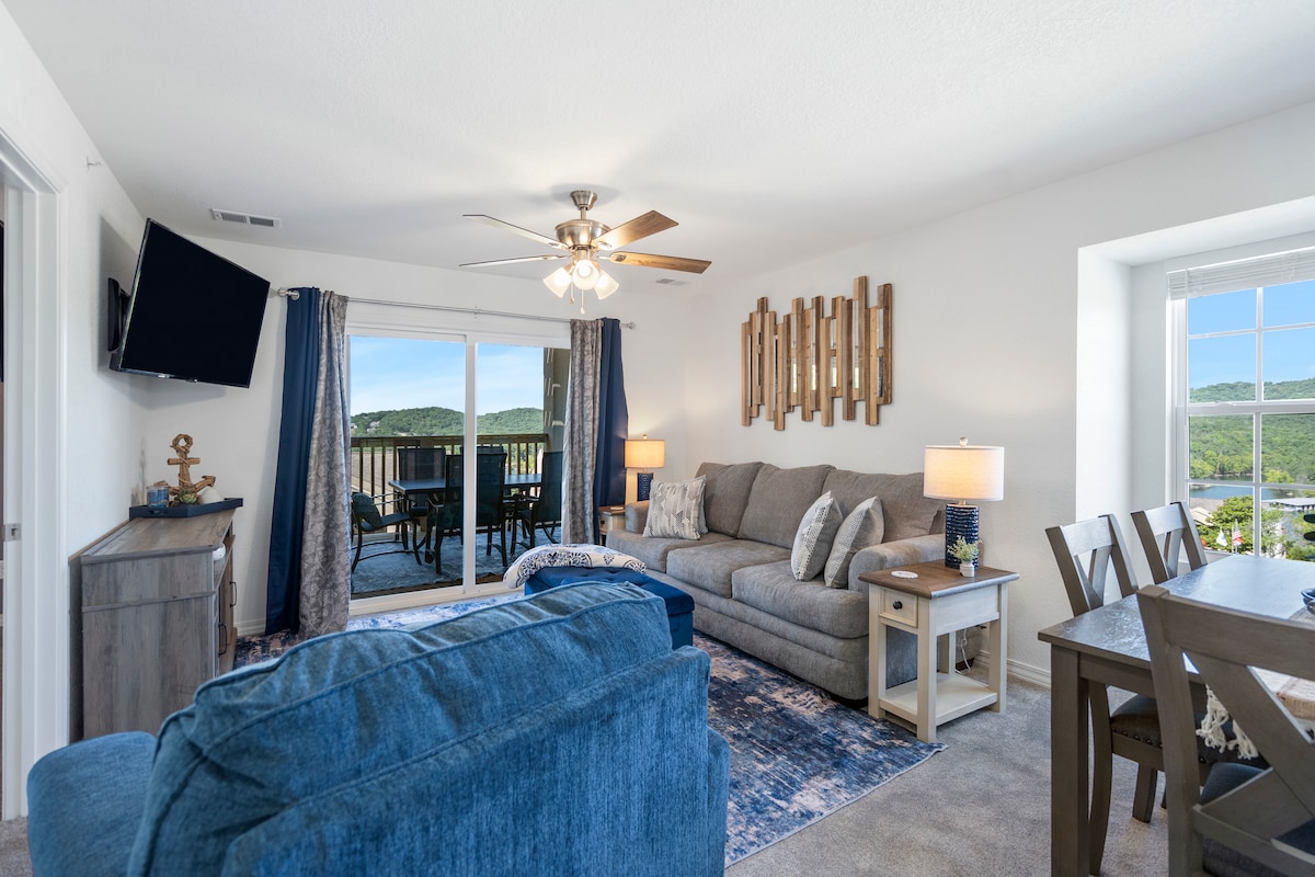 Just minutes from Table Rock Lake, this condo provides the perfect backdrop for all your Branson adventures! Two queen beds and one pull-out sofa provide sleeping options for up to 6 people. Golf course views from our 3rd floor balcony, and a full service kitchen complete this peaceful condo. An easy drive to Silver Dollar City, Dolly Parton's Stampede, the Titanic Museum, and Sight and Sound theater, our beautiful condo will make for an amazing vacation!