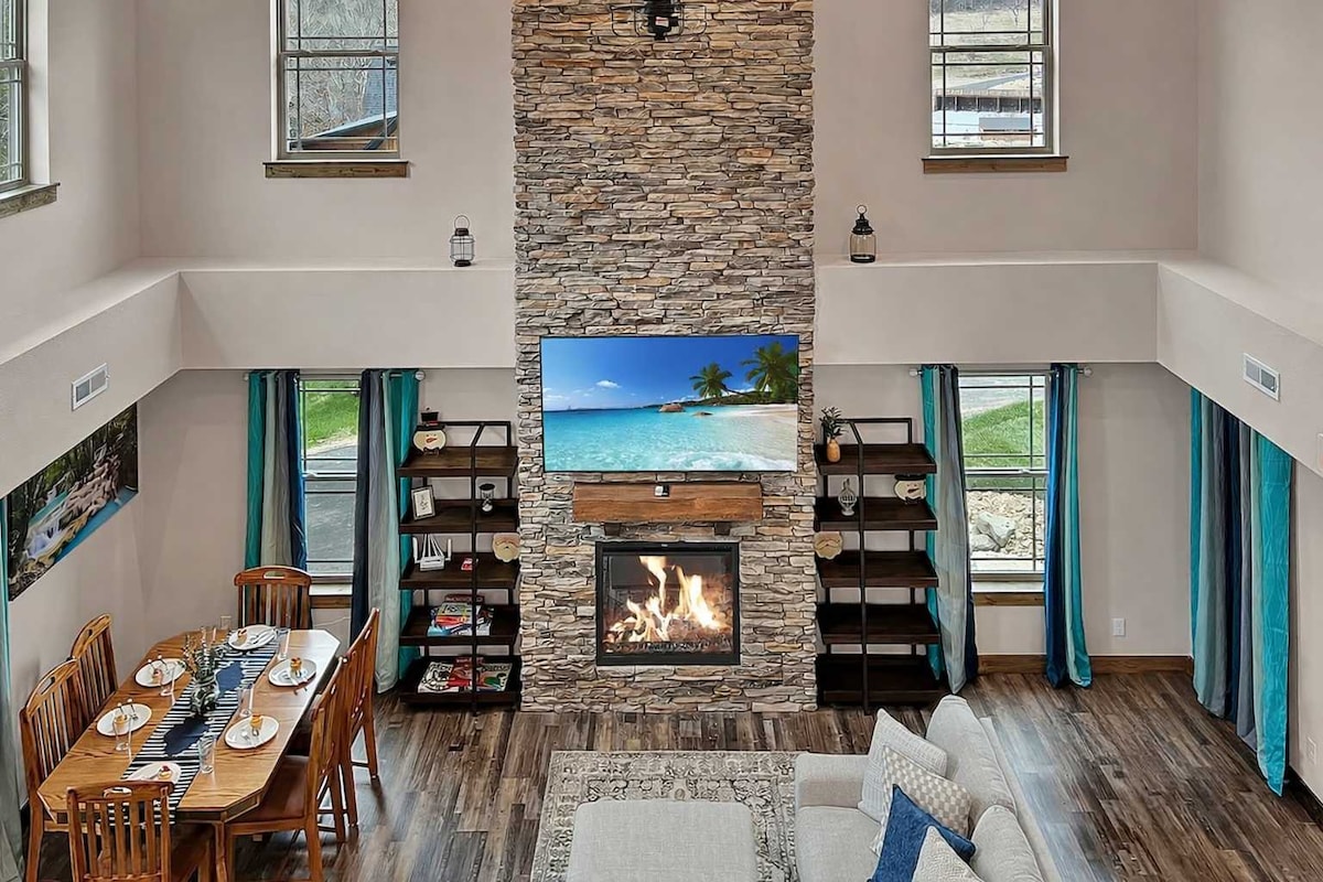 Experience the natural beauty of Table Rock Lake at our private A-Frame cabin. • Direct, private lake access and 2 miles from marina and launch • Private deck with hot tub and fire pit • 15 minutes from Big Cedar Lodge, Top of the Rock and Thunder Ridge Arena • 20 minutes from Branson • Filtered water • Free & clear cleaning products • Cozy Earth organic sheets • EV charging outlet **As of 2025, accommodations for 5-6 guests will include a sectional sofa and full-sized air mattress.**