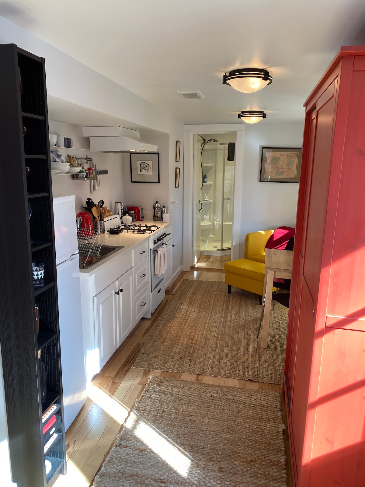 Charming guest apartment on our property on 1.5 acres in pastoral neighborhood, 7 minutes to Wilton center and 8 to Westport center. The cottage is a good size for 1-2 adults, can fit 3 people if one is a child. The unit is separate from our house, connected by a breezeway, above the garage. It is quaint and cozy. High end kitchen appliances include gas range, mini fridge, microwave and mini dishwasher. The bedroom has a queen bed. We have a twin air mattress for use in the living room.