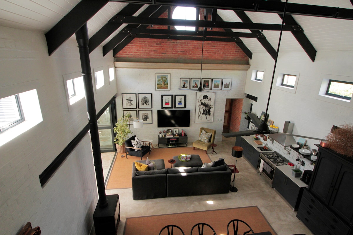 Situated on a small holding 5km outside Franschhoek, opposite the exquisite La Motte Wine Estate, Heidi’s Barn offers the perfect self-catering base from which to explore the Winelands. A fire pit, outdoor dining area and a large swimming pool (shared with one other cottage) are perfect for summertime relaxation while an indoor wood-burning fireplace and wooden floors throughout make for a cosy winter escape. The barn runs on mains power with solar back up for load shedding.