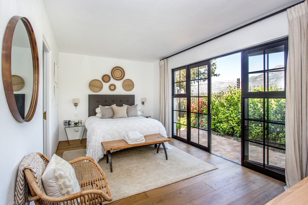 Situated on a small holding 5km outside Franschhoek, opposite the exquisite La Motte Wine Estate, Heidi’s Barn offers the perfect self-catering base from which to explore the Winelands. A fire pit, outdoor dining area and a large swimming pool (shared with one other cottage) are perfect for summertime relaxation while an indoor wood-burning fireplace and wooden floors throughout make for a cosy winter escape. The barn runs on mains power with solar back up for load shedding.