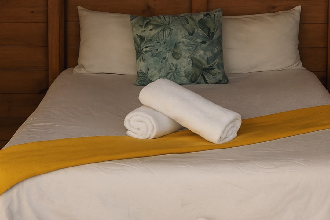 Almond cottage is positioned above a dam in the heart of the Banhoek conservancy. It is a light, modern cabin with direct access to endless hiking and the finest mountain biking trails in the western cape. Although it is styled as a one bedroom, two person cabin, there is a queen sized open pod attached to the living room which can sleep 2 children or an extra guest and can be made up for small extra fee. Almond cottage is set back from the lake and enjoys views of farmland and mountains.