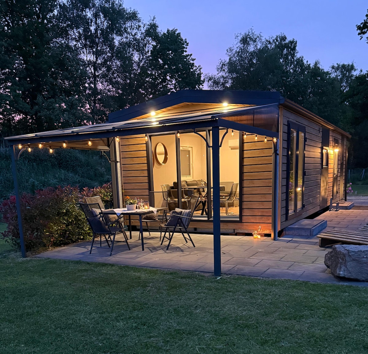 NEU: Waldhaus. Stylishes Fachwerkhaus + Fass-Sauna