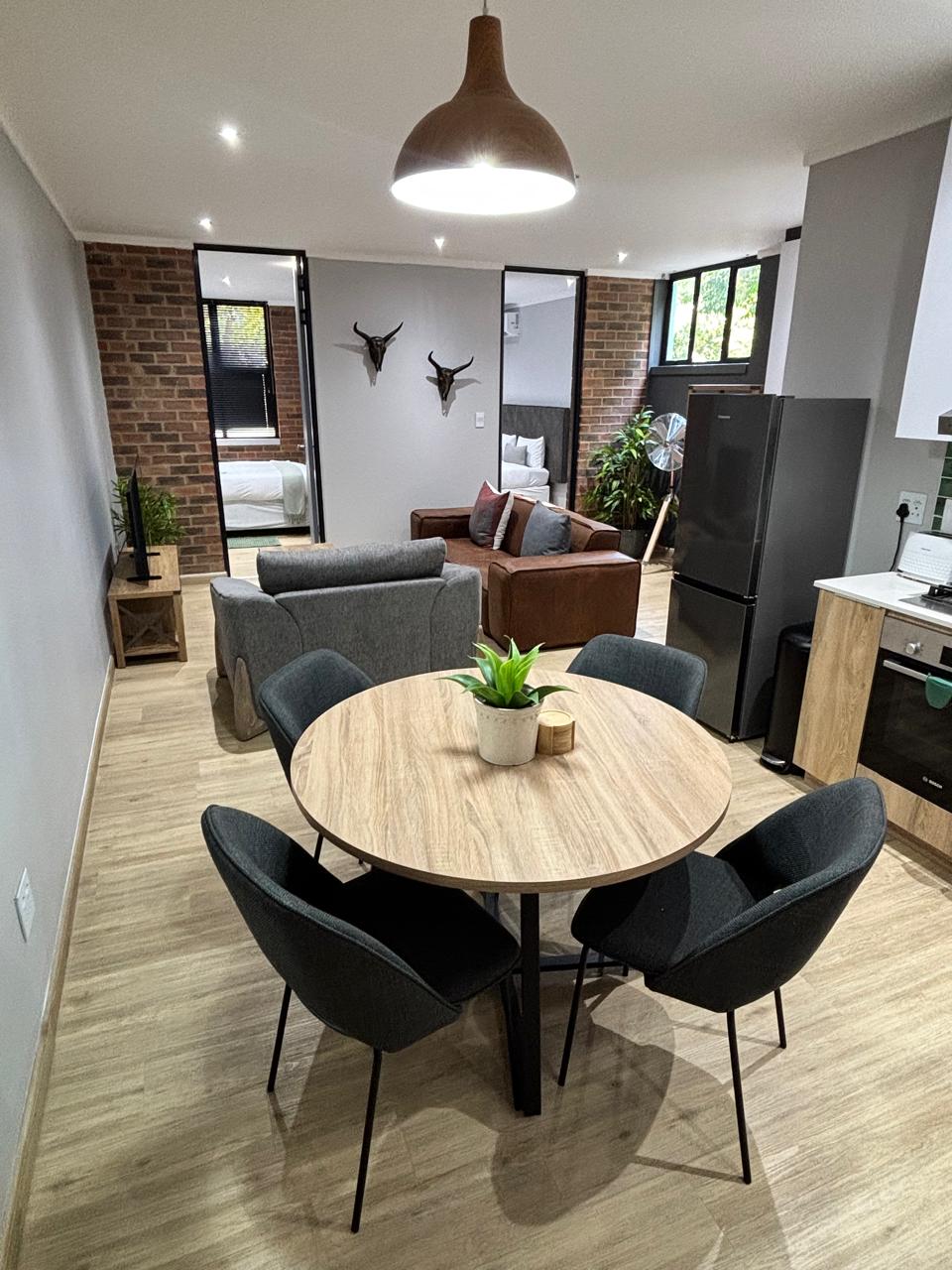 Baobab Self-Catering Suite can accommodate 2 people. Discover tranquility in our Baobab Suite, perfect for any traveller. Enjoy a private entrance, open-plan living area, full kitchen, workstation, and free WiFi. Unwind in the modern bedroom with a queen size bed and en-suite bathroom. The suite boasts views of lush gardens and a beautiful pool. Includes free parking and a Smart TV. Close to attractions, dining, nature reserves, and shopping. Ideal for relaxation or a productive stay.
