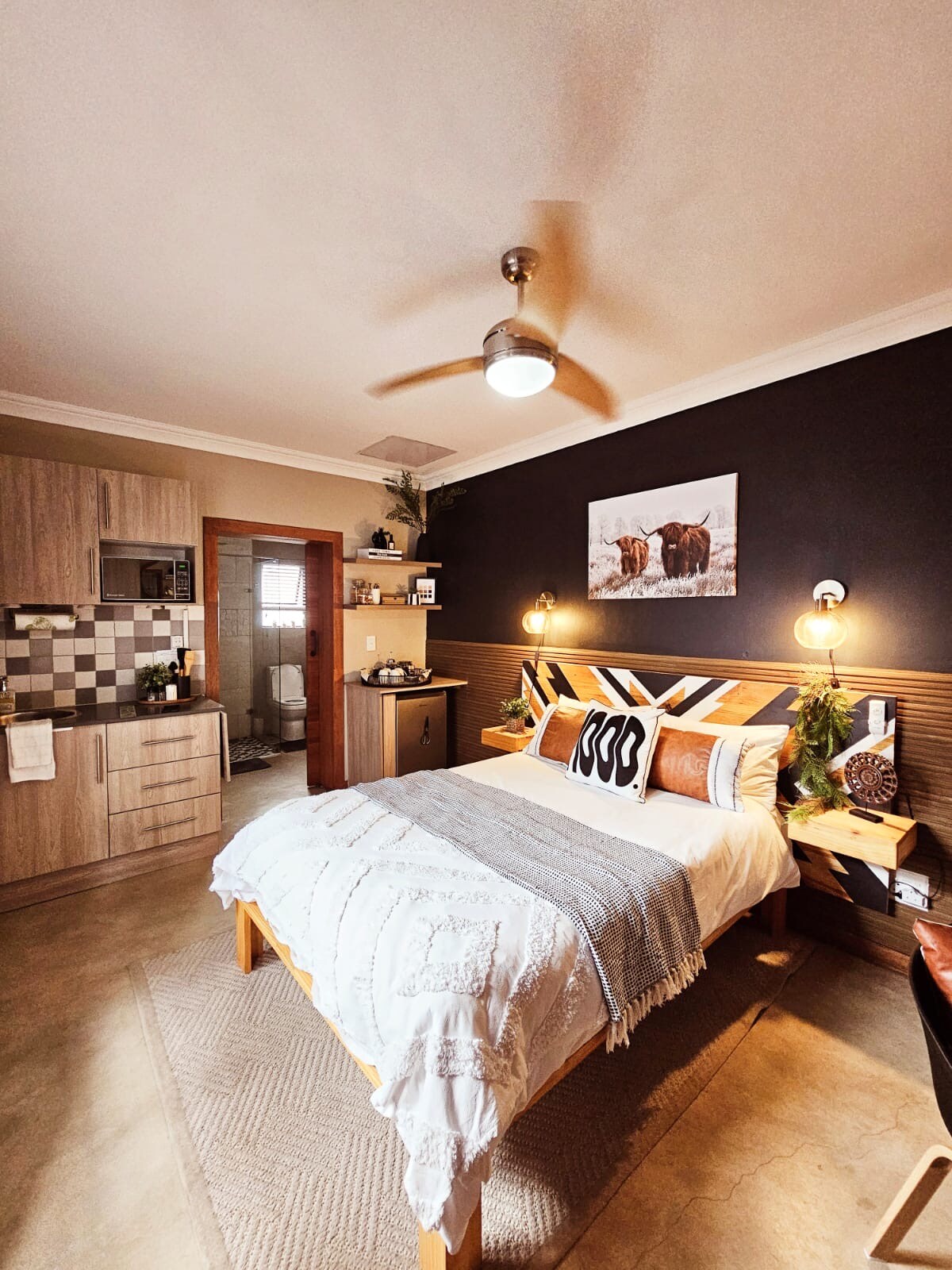 Self-catering Our studios are safe, elegant, and comfortable. Air-con, TV/Netflix, free Wi-Fi, kitchenette with amenities and secure parking. Centrally located in up-market Baileys Muckleneuk. For a romantic break or business trip. Relax after a long day with a cup of coffee in our serene garden under our decade old trees. Walking to Affies Sports Grounds 400m Loftus Versveld 1.2km Tuks 1.6km Boys High 1.4km Hospitals - Groenkloof, Zuid-Afrikaans and Jacaranda 2km UNISA 2.9km ID REQUIRED