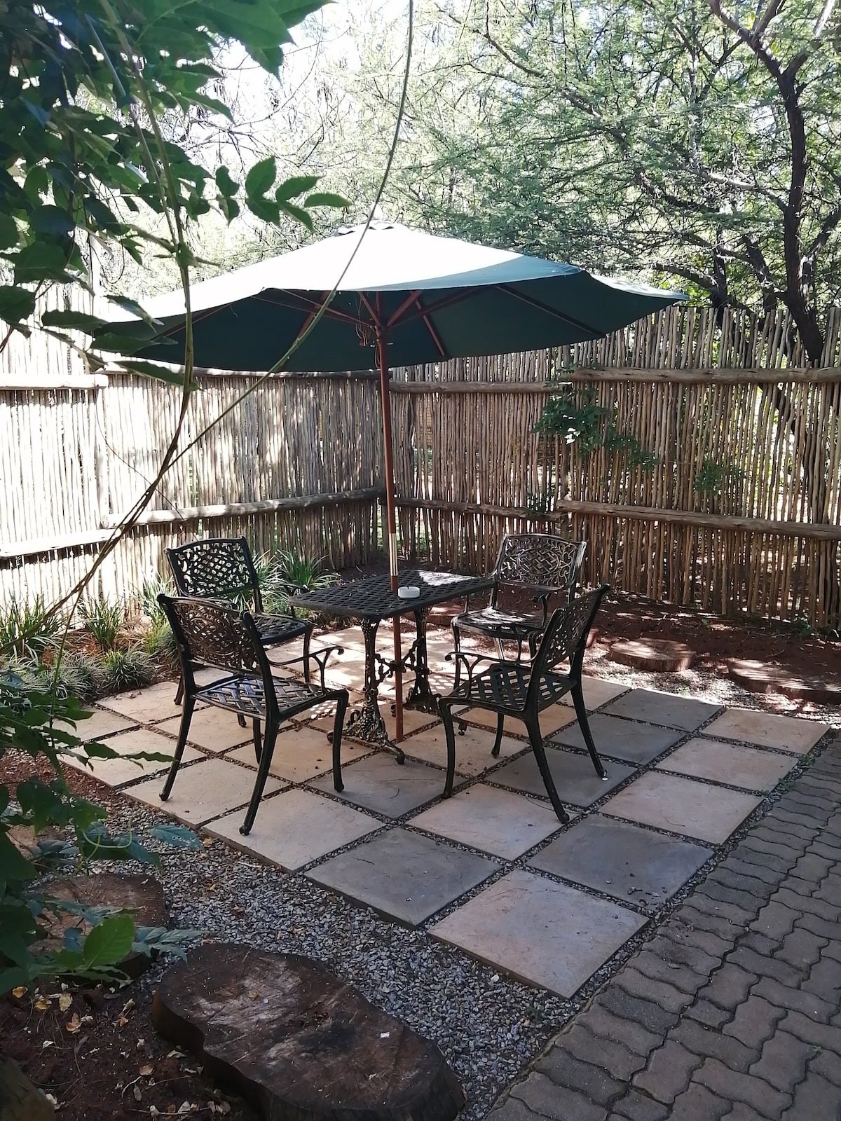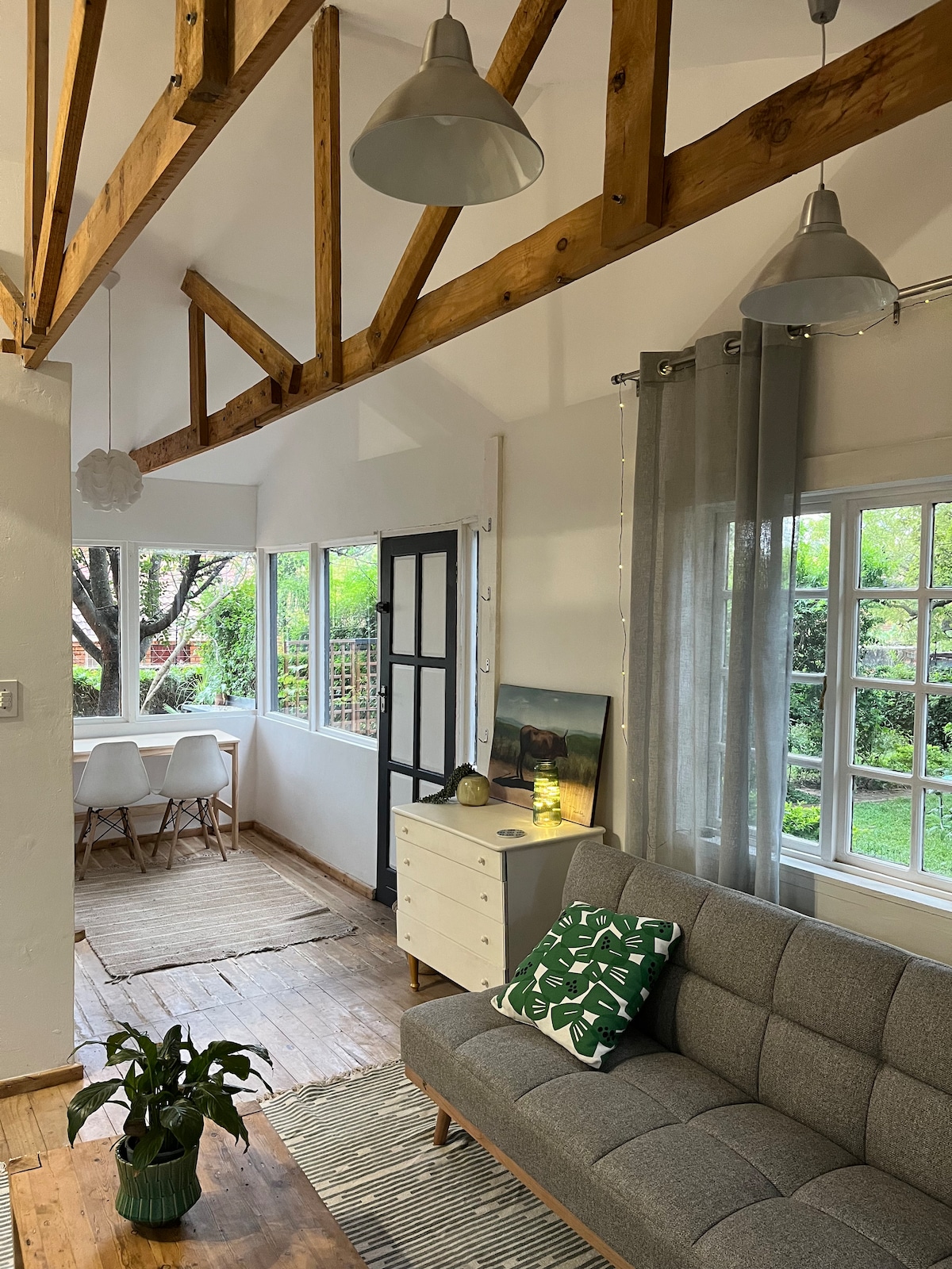 41 on Stanley is a spacious cottage nestled under tall trees. It is light and airy and offers guests a relaxing, homely experience. The cottage is a home away from home with all the necessary amenities, a smart TV as well as a patio with a view of the cottage's own little garden as well as a herb and vegetable patch. An added bonus is that we have solar power, which allows us to get through power outages unscathed, most of the time.
