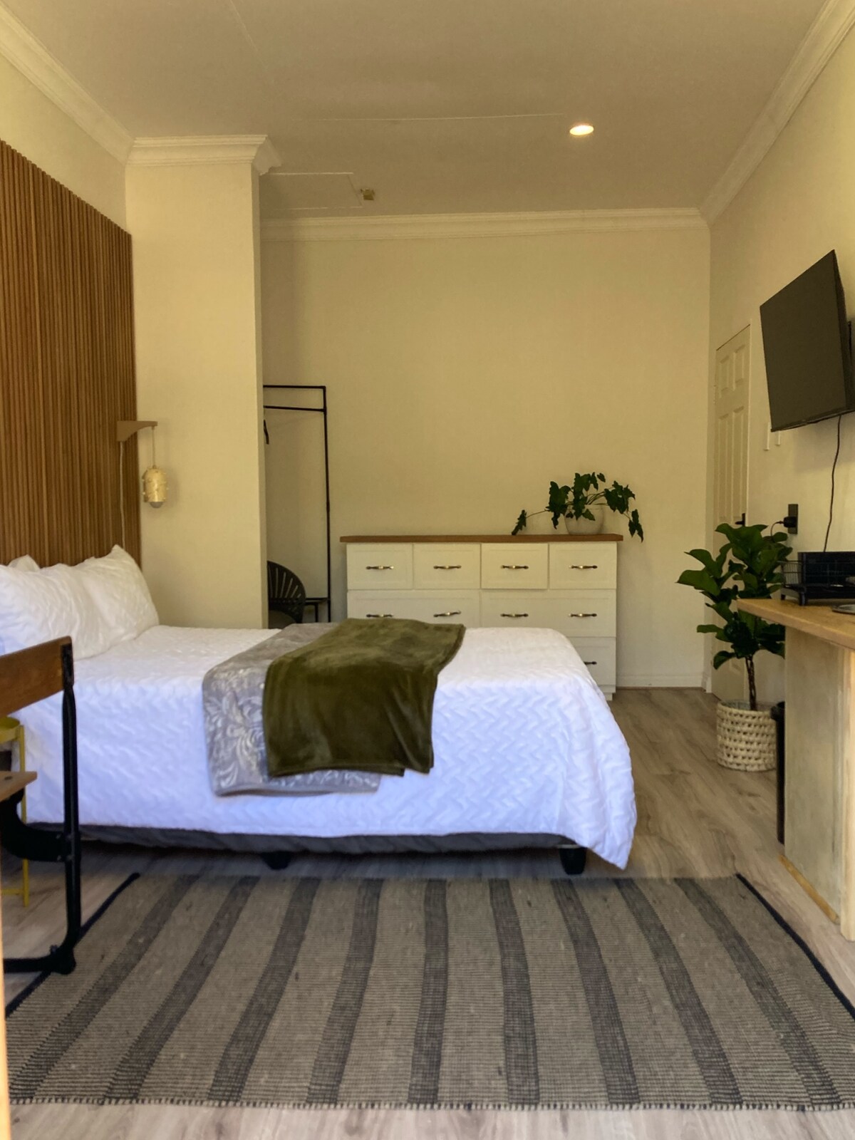 Baobab Self-Catering Suite can accommodate 2 people. Discover tranquility in our Baobab Suite, perfect for any traveller. Enjoy a private entrance, open-plan living area, full kitchen, workstation, and free WiFi. Unwind in the modern bedroom with a queen size bed and en-suite bathroom. The suite boasts views of lush gardens and a beautiful pool. Includes free parking and a Smart TV. Close to attractions, dining, nature reserves, and shopping. Ideal for relaxation or a productive stay.