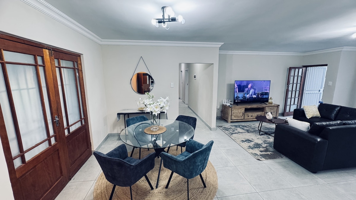 Welcome to our cozy beautifull , modern and very spacious open-plan one-bedroom self-catering unit! This unit has a fully equipped kitchen and a bathroom with a shower, basin and toilet Enjoy free WiFi, a smart TV (use your own streaming logins). Enjoy your own private courtyard, ideal for relaxing outdoors, along with secure onsite parking for peace of mind. Whether you're travelling for work or leisure, this unit offers comfort, privacy, and everything you need for a pleasant stay.