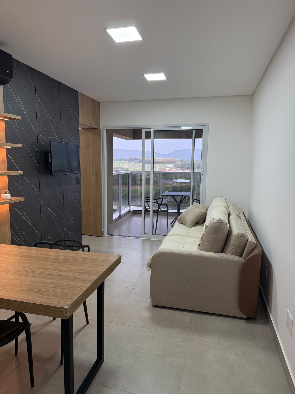 Apartamento novinho em Rifaina-SP, com 2 quartos aconchegantes, ambos com ar-condicionado, sendo a suíte com Wind Free. Totalmente mobiliado, com móveis e utensílios novos. A sala integrada à cozinha conta com ar-condicionado de 18.000 BTUs e Smart TV de 50”. Acomoda de 4 a 6 pessoas, ideal para famílias que buscam conforto e momentos de descanso em um dos destinos mais charmosos do interior paulista.