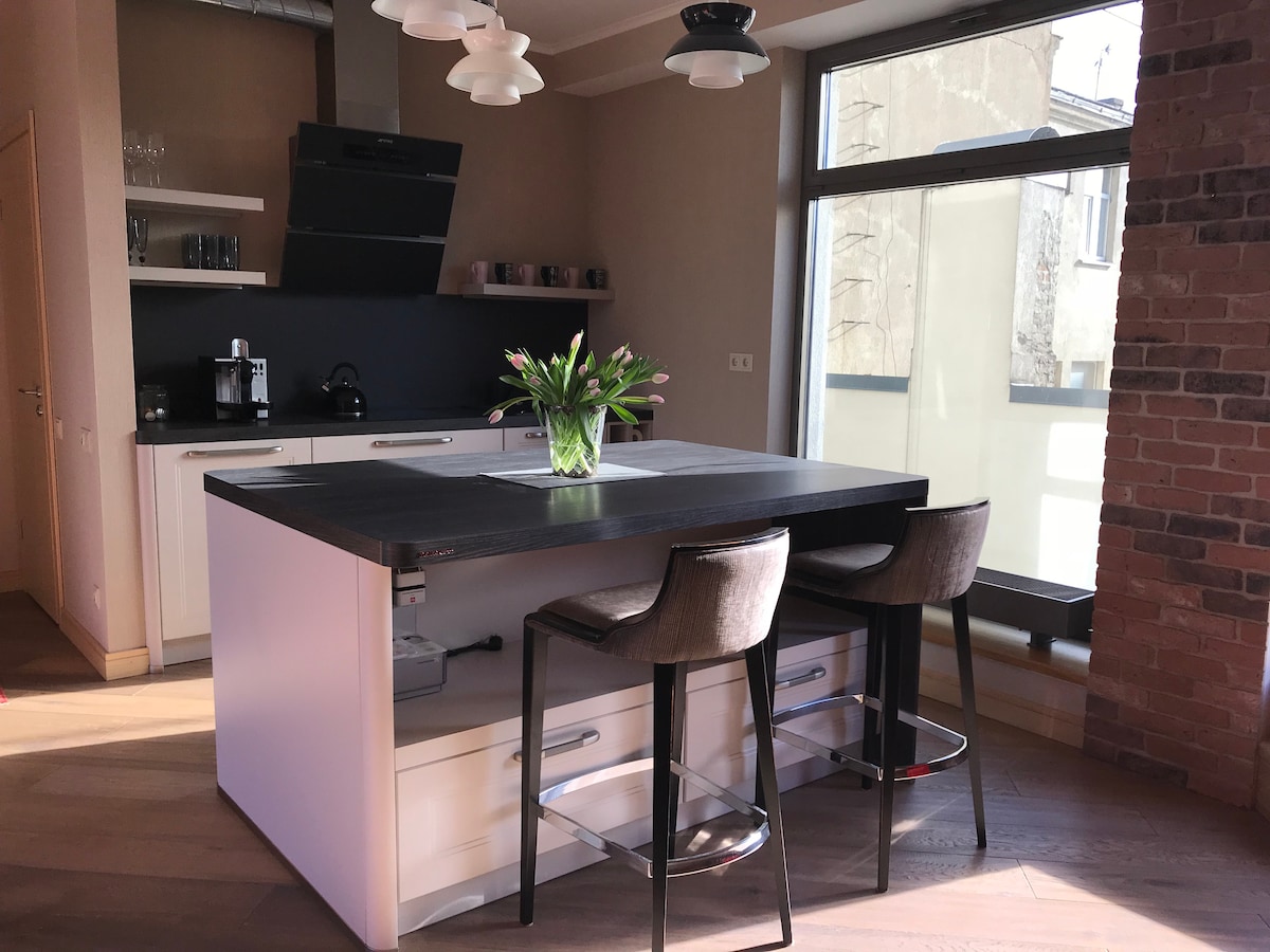 My design apartment in a renovated historic building is only a 5 minute walk from Riga Old Town. The combined living room and dining area comes with plenty of natural light. Kick back on the comfortable couch and enjoy a book or some TV if that's what you prefer. The kitchen is stocked with all the necessary cooking utensils, and an espresso machine so you can start your mornings off right. The comfortable Queen size bed in the bedroom will guarantee that your time here will be relaxing!