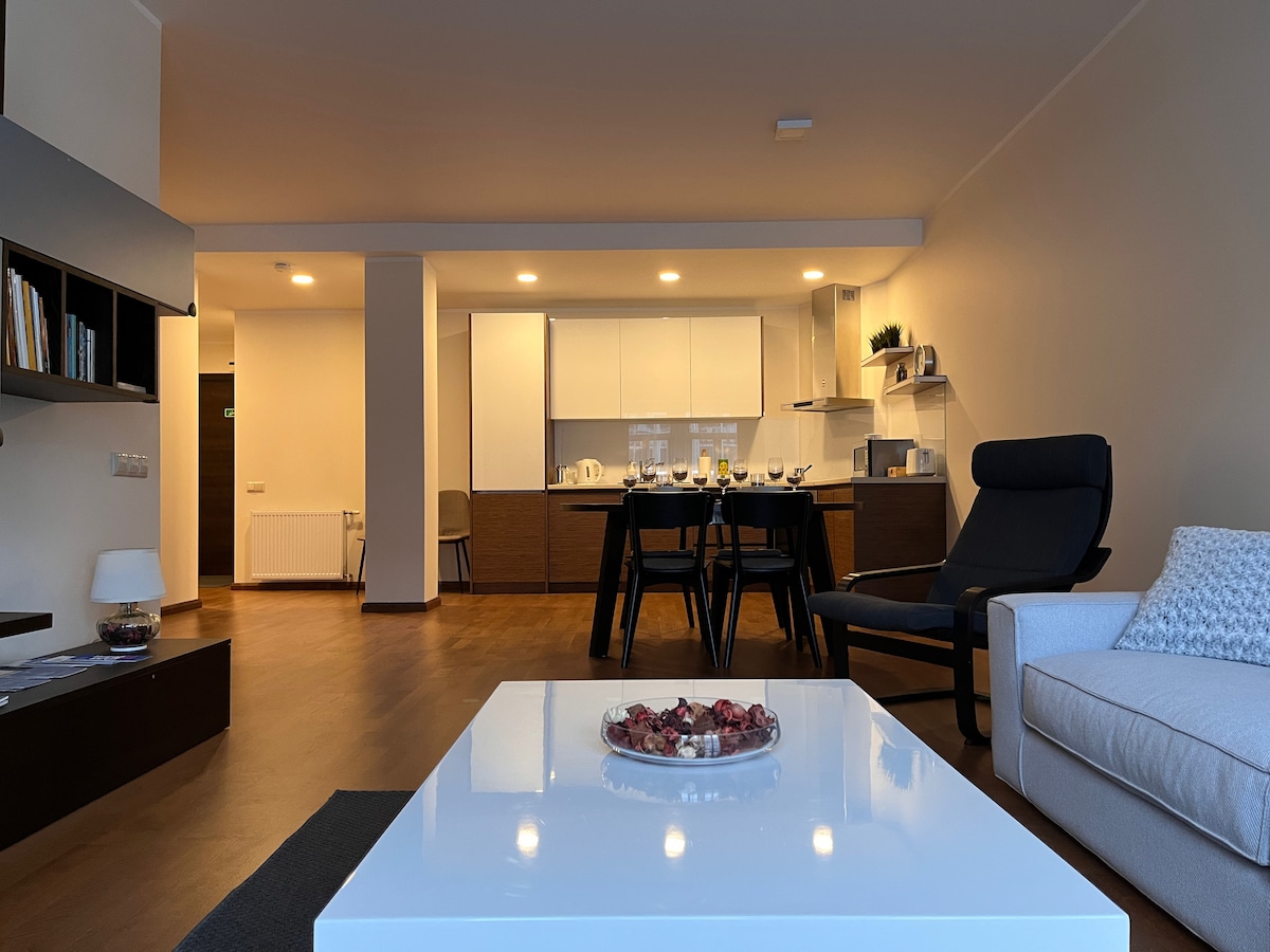 This lovely apartment situated in the very center of Riga. The building is called "Blaumana Residence" and has been home to many of Riga's elite through-out the 20th century, but has a great modern touch given to it by the renovation Around the corner, you'll find one of the nicest parks in Riga - Vermanes Garden. All of the best sights and restaurants are within a walking distance from the apartment, also one of the best shopping centers in Riga- Galleria Riga - is located right next door