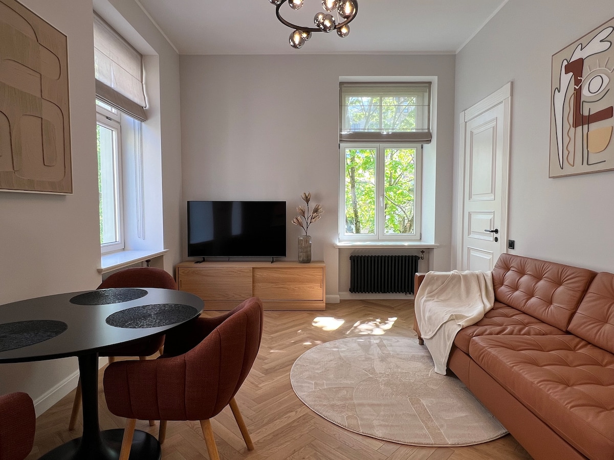 Newly renovated, cozy 2-Bedroom Apartment in the Historic Center of Riga. High-speed internet. Very quiet street. Just a 12-minute walk to the Central Railway Station and 15 minutes to Old Riga. Avotu Street (translated as “spring water”) is well known for its many wedding shops. Free parking is available in the backyard. Please note: gatherings and parties are not allowed. We’re truly grateful for every stay — your support helps us continue renovating our 19th-century historic building 🙏♥️