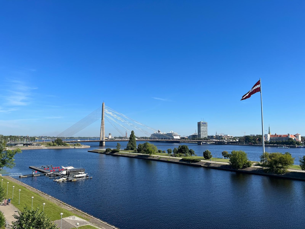 Refined Riverside Residence Where Luxury Meets the Comfort of Home Enjoy breathtaking views of the Daugava River and the historic Old Town skyline from this elegant and welcoming residence. Perfectly located, it offers vibrant urban access while remaining a peaceful retreat. Designed for luxury and comfort, the apartment feels warm and inviting — like a true home. With cultural landmarks, dining, and shopping nearby, plus convenient airport access, everything is within easy reach.