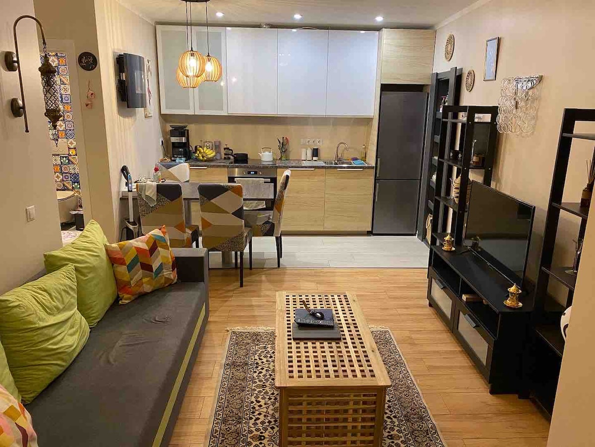A Modern & Spacious Apartment near Riga Airport. Experience comfort and convenience in our 64 m² apartment near Riga Airport. Enjoy a bright living area, a fully equipped kitchen, and a cozy bedroom with a queen-sized bed. The modern bathroom features a bath, shower, heated floor and complimentary toiletries. Stay connected with high-speed Wi-Fi and unwind with a big flat-screen TV. Additional amenities include an in-unit washer, dryer, and easy access to public transportation.