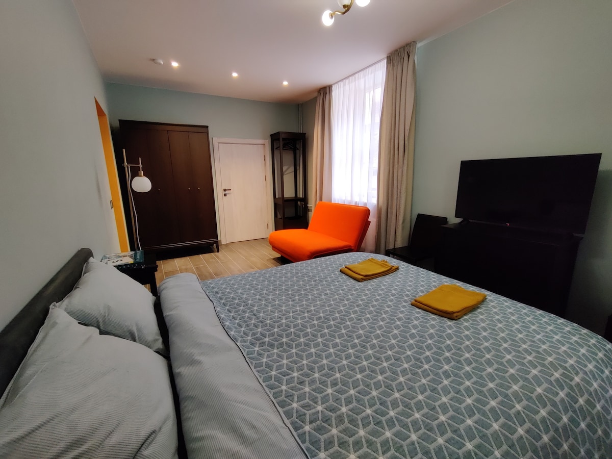 This apartment is ideally located in the historic centre of Riga, with views of the Old Town. It is close to restaurants, shops and all the main tourist attractions, making it easy to plan your visit. The cozy studio has a unique oval office and coffee machine for undisturbed work. The bedroom include a king-size bed and a TV corner for relaxation. Freshly renovated bathroom with washing machine and toiletry amenities are also available.