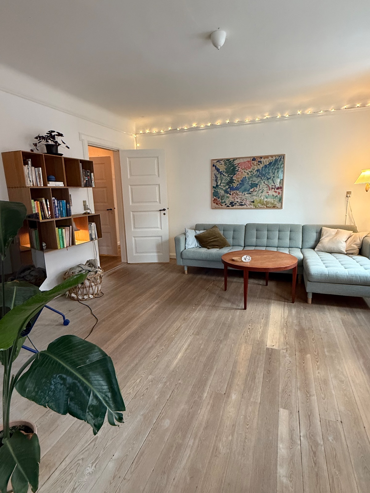 Flot og rummelig lejlighed i skønne Mejlgade. Beliggenhed i Aarhus C med gåafstand til gode restauranter, indkøbsmuligheder, parker, Aarhus Ø og en masse forskellige attraktioner. Lejligheden er designet med store vinduer, som giver et naturligt lys. Den er udsmykket med store billeder, spejle, planter m.m. for at skabe en hyggelig stemning. Perfekt til kæresteparret, familien, eller en gruppe på op til 4 personer (5 hvis en person sover på sofaen - skriv en besked hvis dette er nødvendigt).