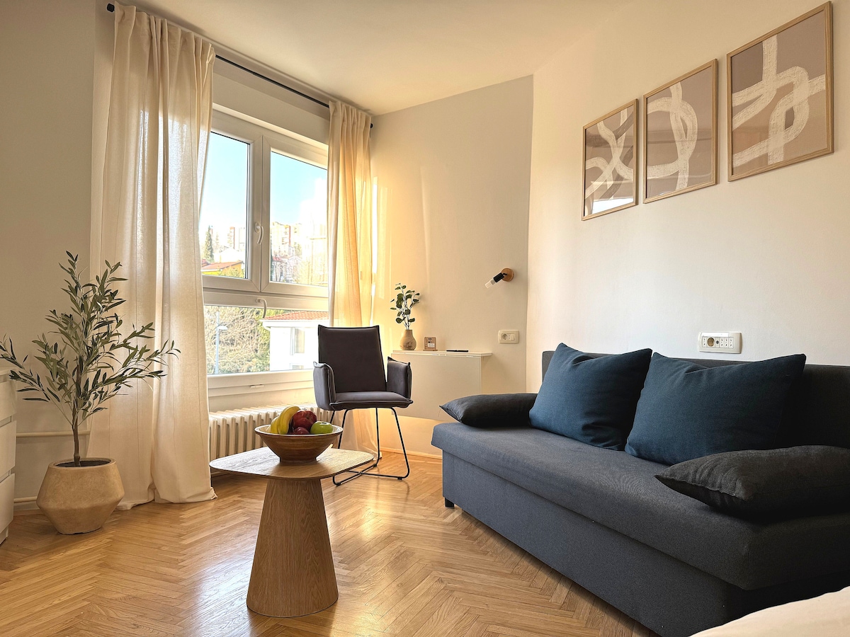 This modern apartment includes a full (eat-in) kitchen, a combined bedroom and living area with a comfortable pull-out couch, and a recently updated bathroom. Apartment is located on the first floor and situated in the historical city center. It's ideal for couples especially if they are arriving by bus because it is one minute walk from the central bus station. Apartment is very well equipped. Dishwasher and washer-dryer are located in the kitchen and TV in the air conditioned living room.