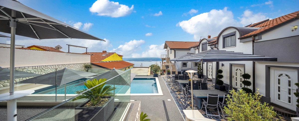 Unique beach house with a splendid seaview, infinity pool( heated) and hot tub with sea view in the village Jadranovo, quiet and beautiful part of Crikvenica Riviera. In the perfect location, just a few stairs away from the beach, 30min bike ride(bikes included) or an even quicker car ride from center of Crikvenica. Enjoy private atmosphere few stairs from sea and short drive from city noise.