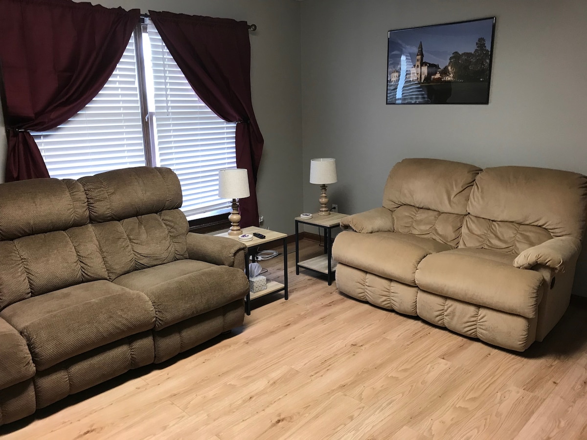 Bienvenue chez vous! Discover the charm of our French-inspired chalet in the heart of the vibrant Manhattan, Kansas! Immerse yourself in cozy elegance with 2 bedrooms, a stylish bathroom, and all the comforts of home. Perfect for a relaxing getaway or visiting loved ones at the nearby campus. Our property offers you a spacious yard for your pets to run around in, and all the amenities of home such as wireless internet, a full kitchen, and a coffee bar!