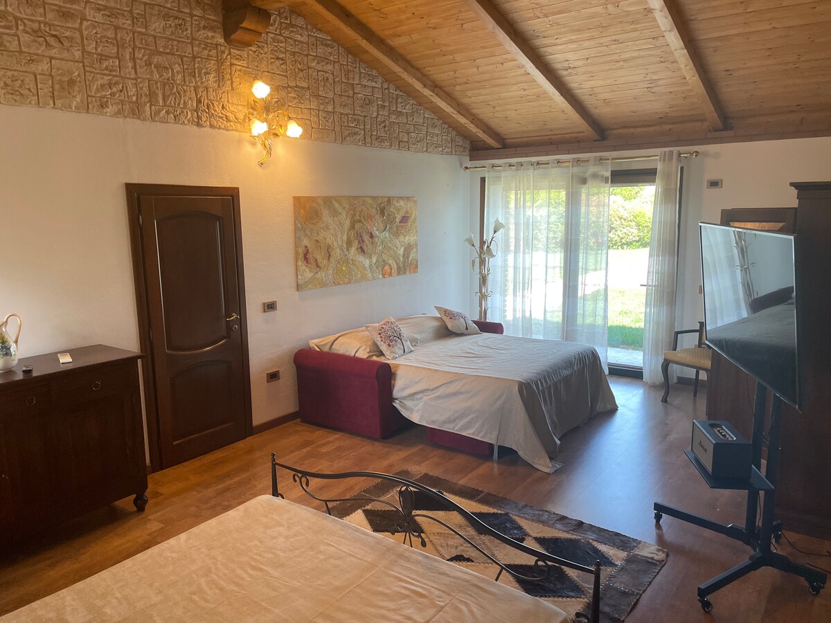 La camera si trova all'interno di un vecchio ricovero per animali, ristrutturato e adibito a uso ricettivo con tre camere immerse nel giardino, con accesso indipendente e tutti i servizi privati. La camera si trova immersa nel giardino. Ha accesso diretto.