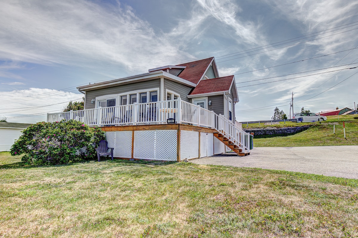 (citq 302783). La maison bleue est un chalet 4 saisons tout inclus avec mezzanine, foyer, vue spectaculaire sur le fleuve, l'horizon et les couchers de soleil typique du Bas-Saint-Laurent. Chalet surélevé, face à l'Île aux Basques, entouré de merveilles, laissez vous bercer au rythme des marées sous vos pieds. La course des oiseaux marins et leurs chants ponctuent le temps. Petite cour intime pour vous reposer. Collé sur la ville de Trois-Pistoles et attraits touristiques locaux des Basques.
